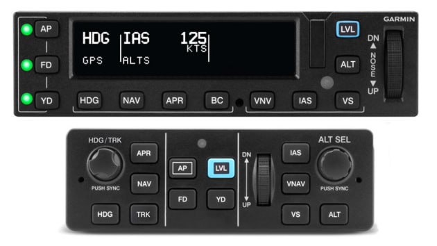 - Robust feature set, including safety features such as underspeed and overspeed protection, a dedicated return-to-level (LVL) mode button, Garmin ESP™ (Electronic Stability and Protection), Smart Rudder Bias capability1, Flight Director (FD), coupled approaches and missed approaches when paired with a compatible navigator and much more